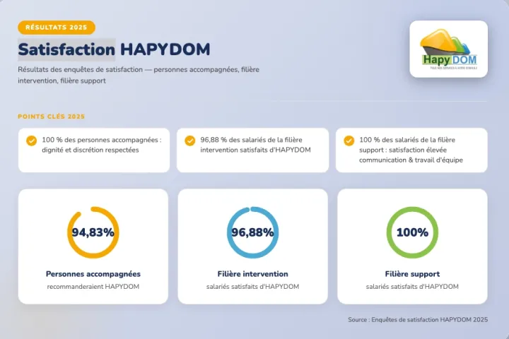 Nous plaçons la bientraitance, l’écoute et le respect au cœur de notre démarche afin de garantir bien-être et sécurité. Implanté localement, HAPYDOM favorise la proximité et la réactivité, tout en innovant grâce à la formation continue de ses professionnels.